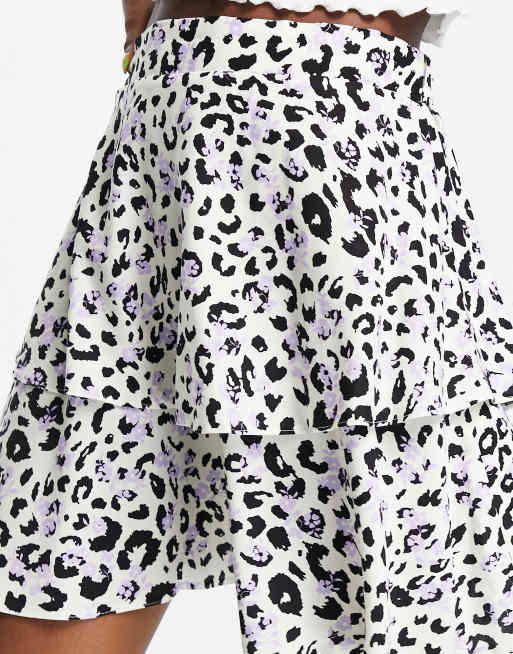 Asos Design Tiered Mini Skirt In Animal Floral Print Asos